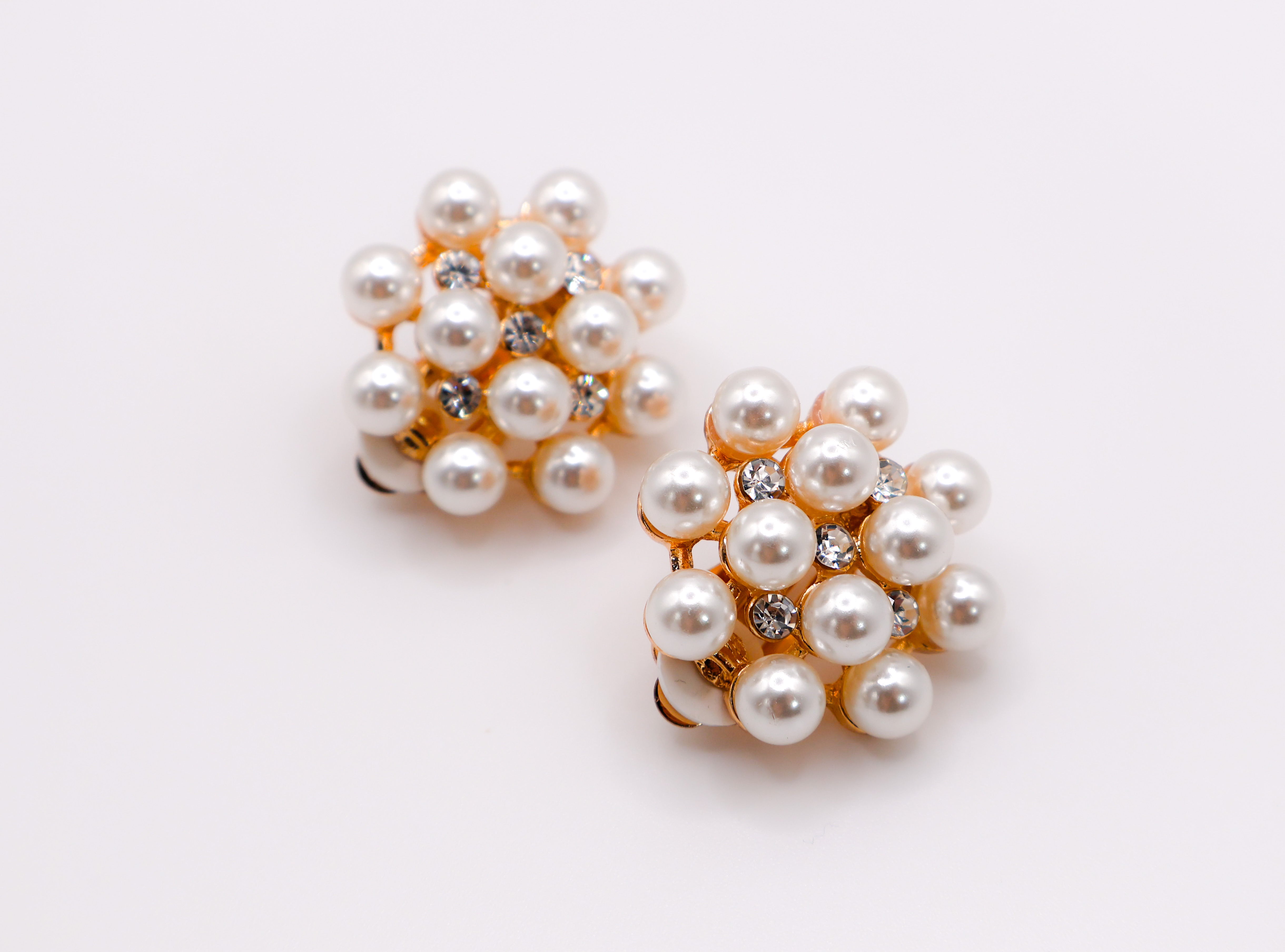 Pearly Floral Elegance Clip-On Earrings
