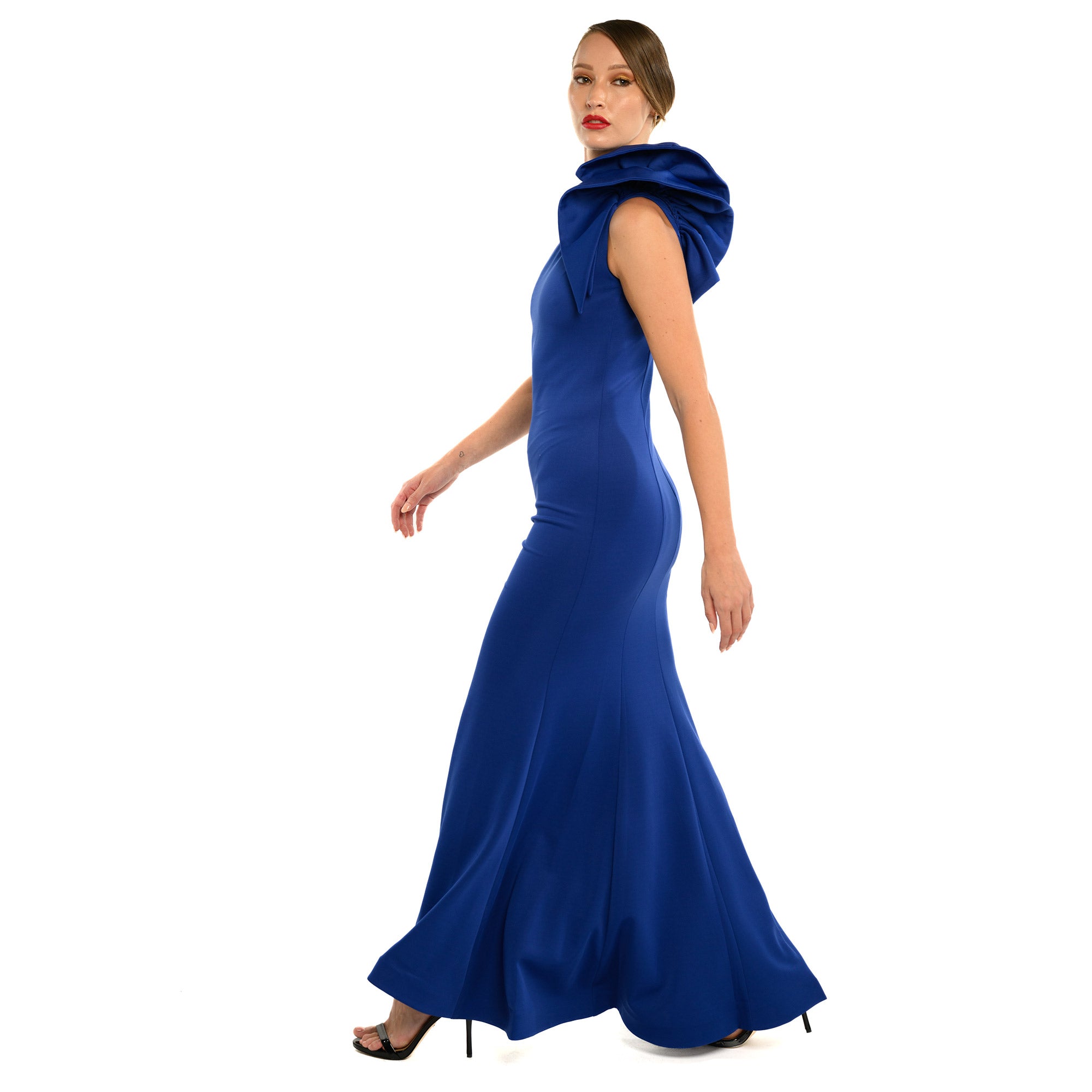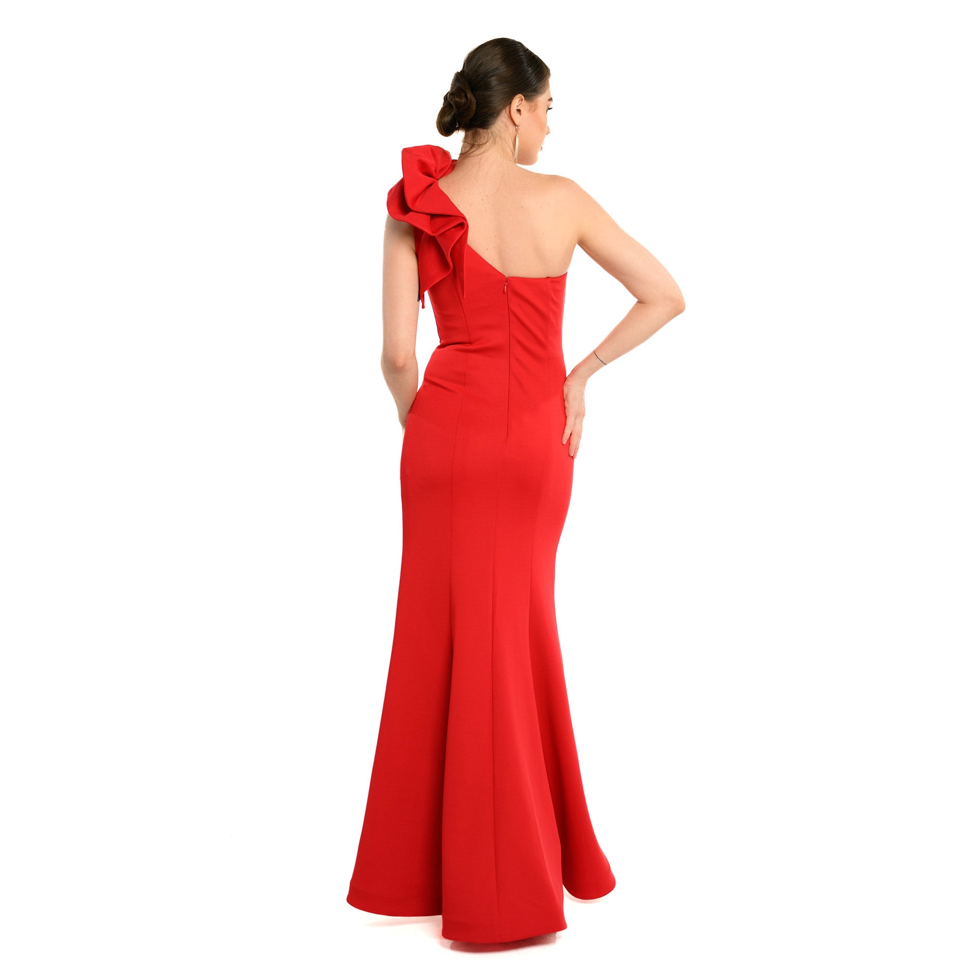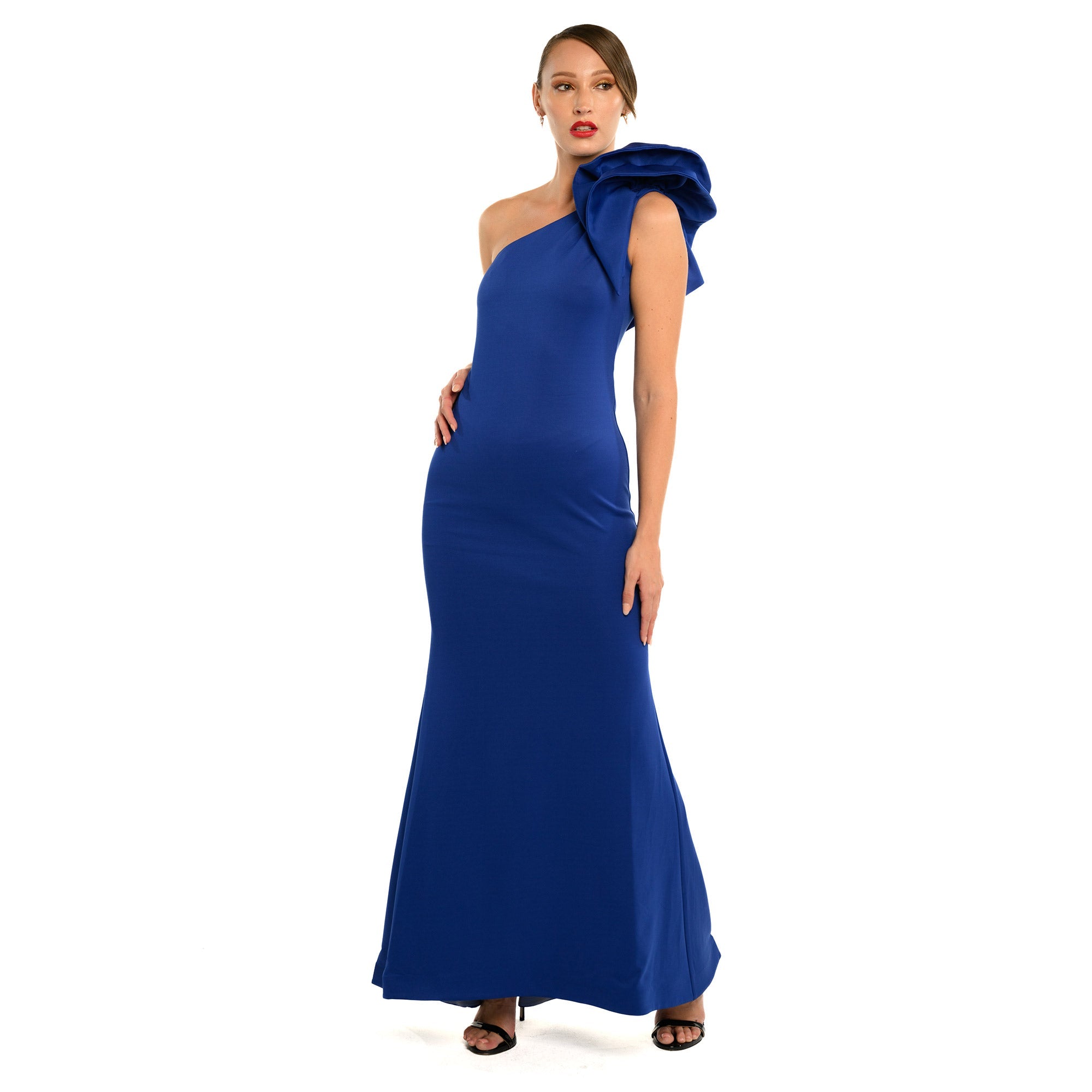 Be bold and unique in The Loren's Asymmetric Shoulder Side Ruffled Gown! Crafted from sumptuous Rayon/Span Scuba fabric, this dress is nothing short of stunning. Stand out from the crowd in Blue or Red and be admired for the asymmetric shoulder and side ruffle details. Enjoy the beautiful silhouette and graceful bloom for a touch of elegance that will last through any formal event. Make a lasting impression with this show-stopping dress and expand your uniqueness!